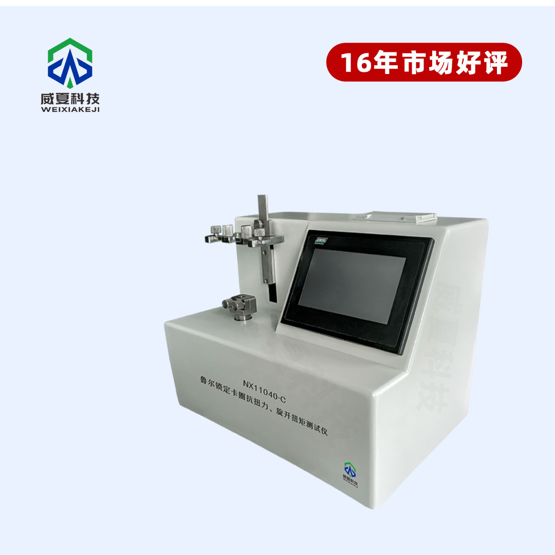 NX11040-C魯爾鎖定卡圈抗扭力旋開扭矩測試儀主要用于測定魯爾接頭的物理特性,是鑒定魯爾鎖定卡圈抗扭力、旋開扭矩的重要手段之一。